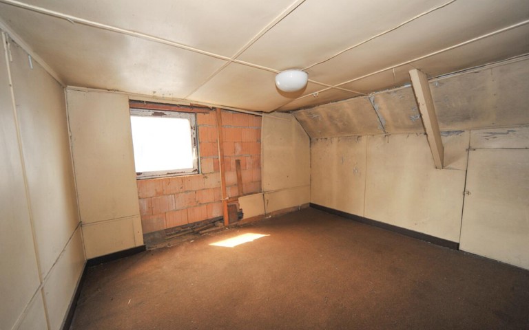 L’escalier du hall vous mène au premier étage, qui comprend deux chambres de taille normale. Les combles d’environ 25 m² offrent des possibilités supplémentaires, telles qu’une troisième chambre, un bureau ou un espace de loisirs.