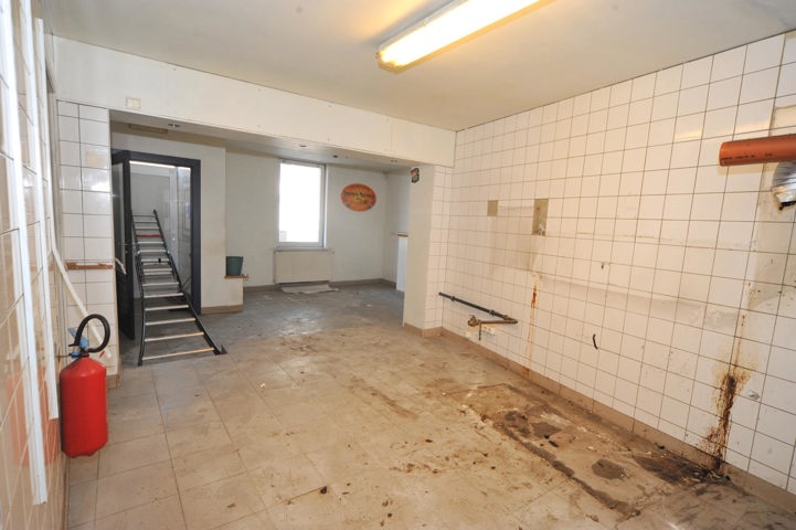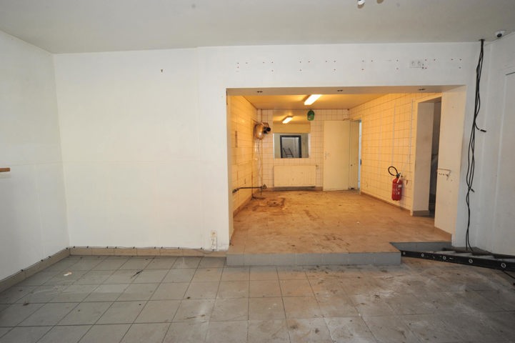 Au rez-de-chaussée, cette maison commerciale comprend une ancienne friterie, avec un hall d'entrée séparé, une salle à manger et un espace de cuisson (mais les installations ont été démontées) ainsi qu'une petite cuisine. Au premier étage, l'appartement en duplex dispose d'un espace de vie spacieux et ouvert et d'une cuisine équipée.