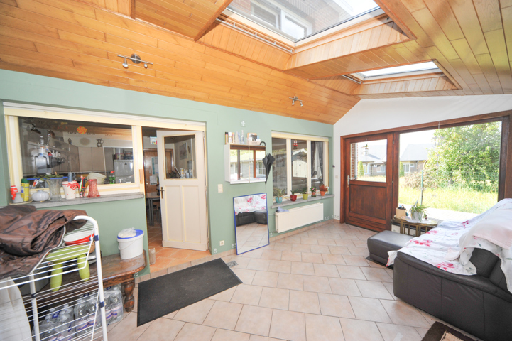 À l’arrière, une véranda lumineuse (non autorisée) crée un espace de vie supplémentaire.
