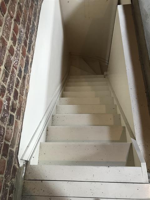 Caves, garage. Séjour, cuisine, buanderie, wc, hall d'entrée. Etage: 3 chambres, salle de bains. Escalier menant au grenier.