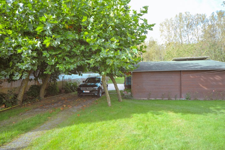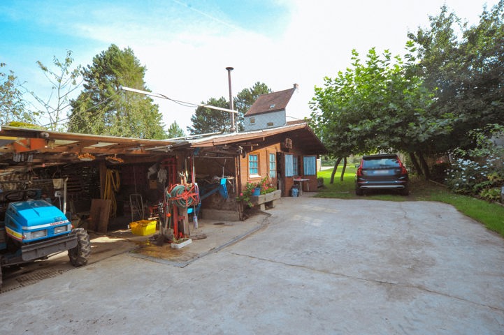 Achter de woning ligt een zeer ruime atelier met alle nodige voorzieningen (elektriciteit, water, toilet, ...). De tuin van de woning loopt tot de achterliggende beek 'Mark'.