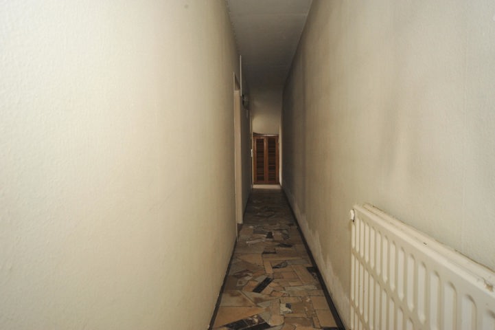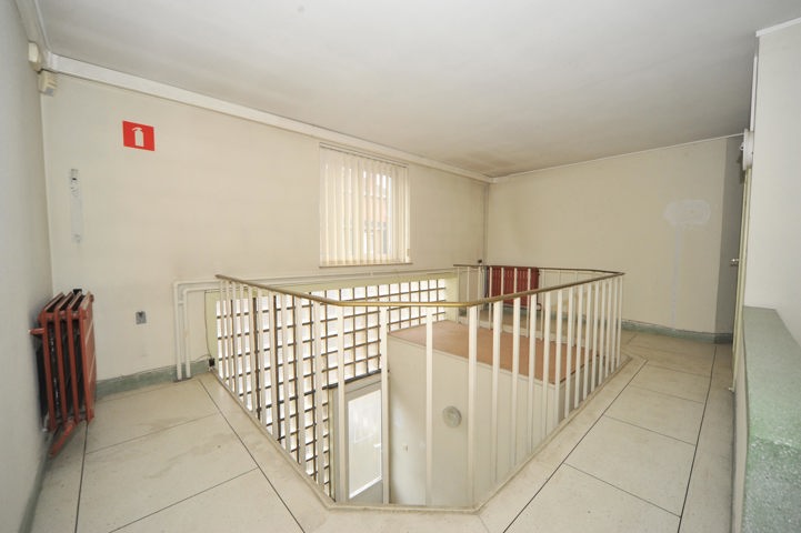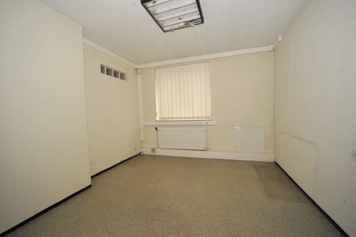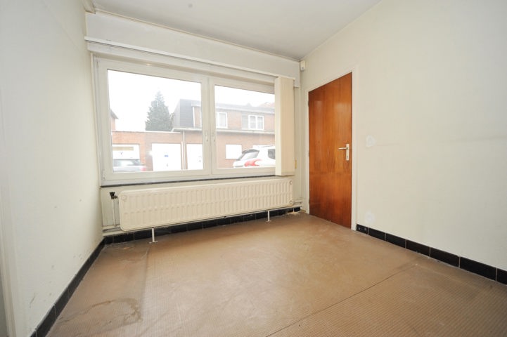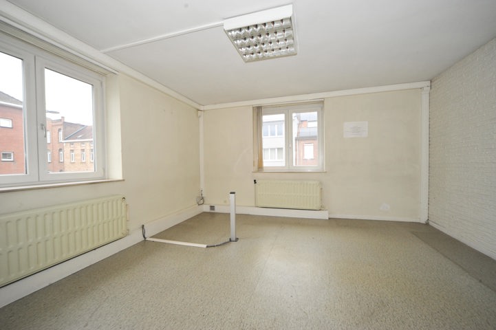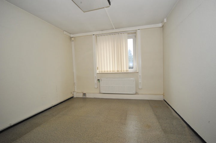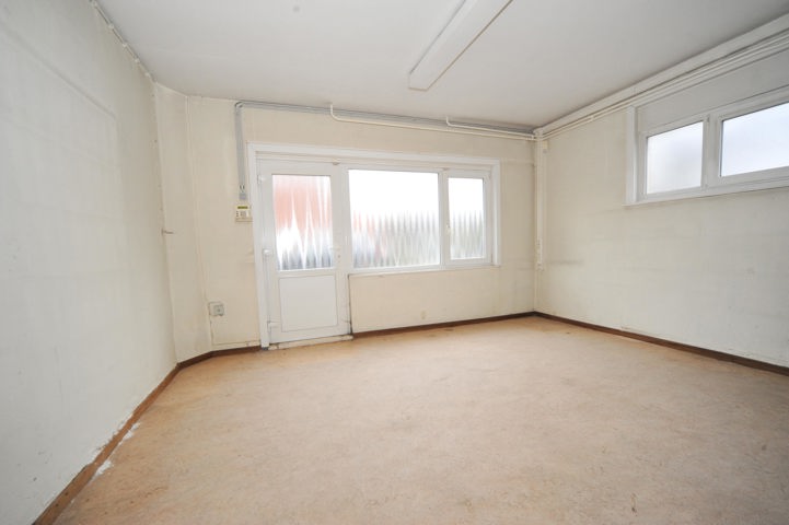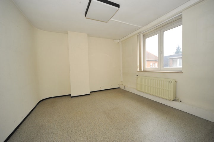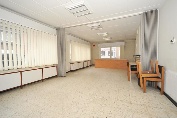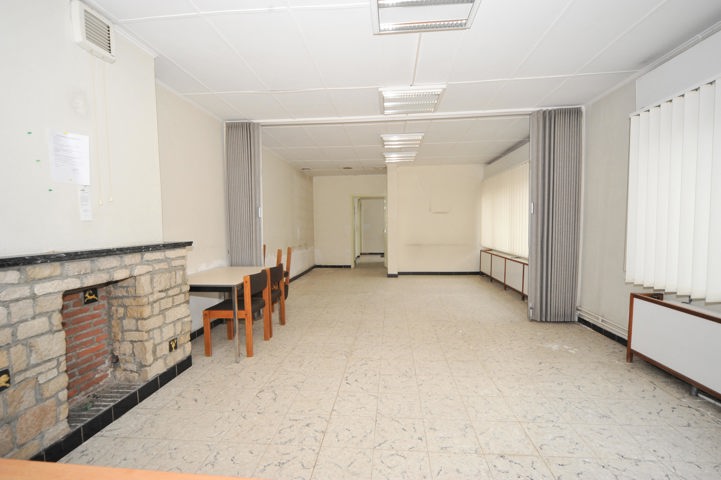 Betreft het voormalig Vredegerecht, een gebouw met verschillende ruimtes die ingedeeld kunnen worden naar een gezinswoning als volgt: centrale inkomhal met vide en traphal naar de eerste verdieping, een ruime zaal die kan dienen als woonkamer (45m²) met aanpalende kitchenette (5m²), 2 bureelruimtes (17m², 10m²), WC, technische ruimte en achterliggende ruimte die omgevormd dient te worden naar een inpandige garage (20m²).