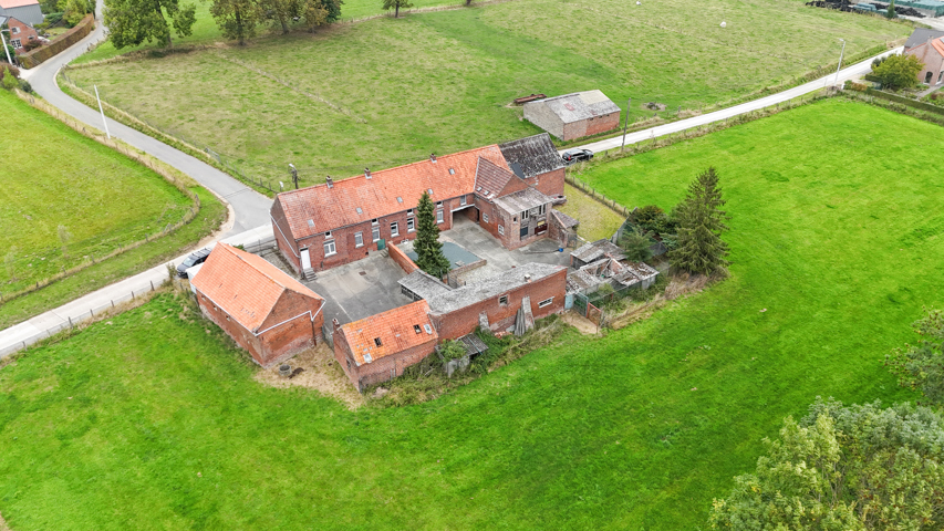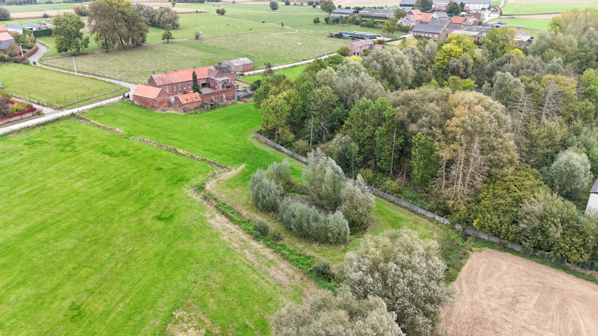 Deze authentieke hoeve ligt op een ruim perceel, omringd door uitgestrekte weilanden. Totale oppervlakte +/- 96are.